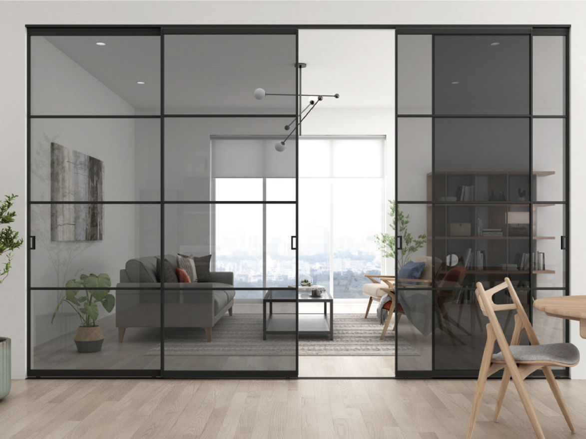パネルやフレーム、採光窓のデザインが豊富なタチカワの間仕切『プレイス』『プレイス スウィング』なら、インテリアとしてもおしゃれな演出ができます。