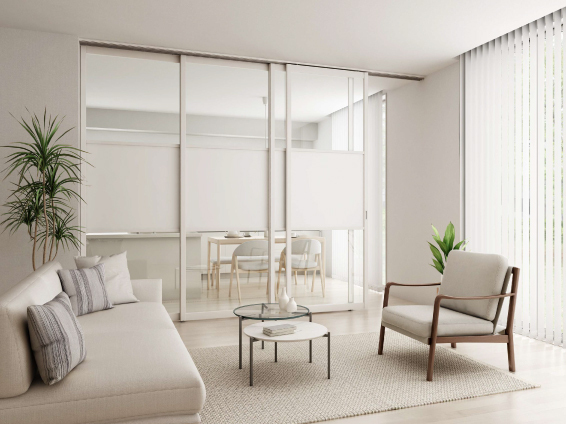 暖房で暖めた室内の空気が、窓から外へ逃げてしまうのを抑えられます。採光窓「クリアー」を選べば、仕切っていても奥行き感はそのままで、光もお部屋に採り込めるので、明るく快適に過ごせますよ。
