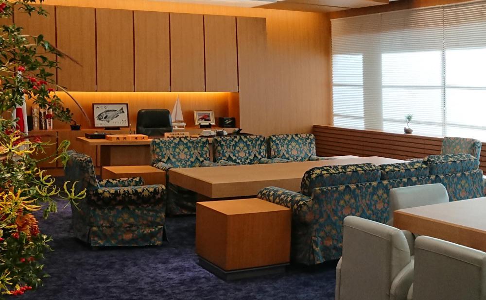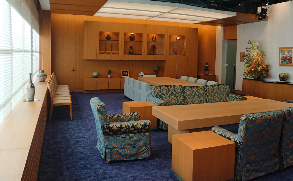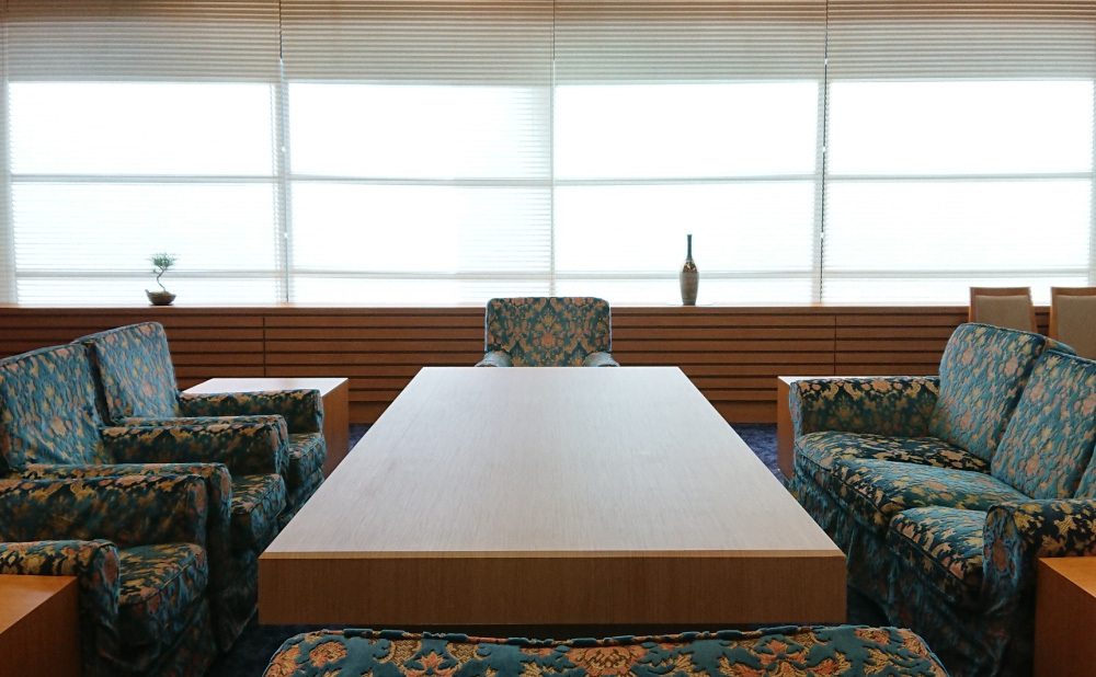 映画に登場する総理官邸に、プリーツスクリーン「フィーユ」が使われています。「フィーユ」は、生地に昇降コードを通す穴がなく、遮蔽性の高いプリーツスクリーン。光漏れを防ぐので、日射しの気になる大きな窓におすすめです。和紙調の生地「ホナミ遮熱」は、重厚感のある家具や床に馴染み、上品な雰囲気を演出しています。
