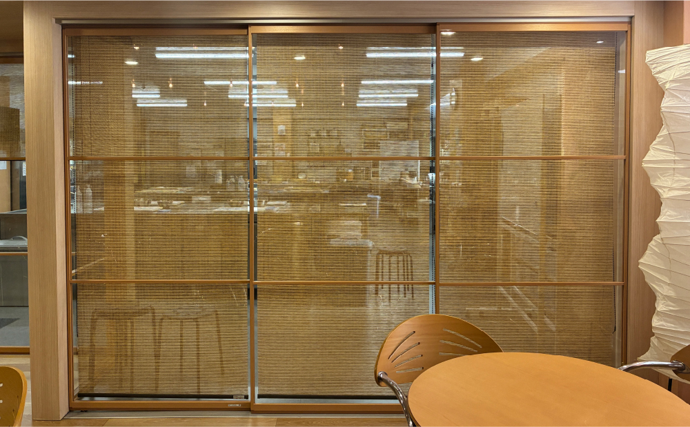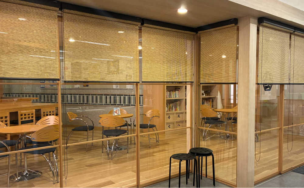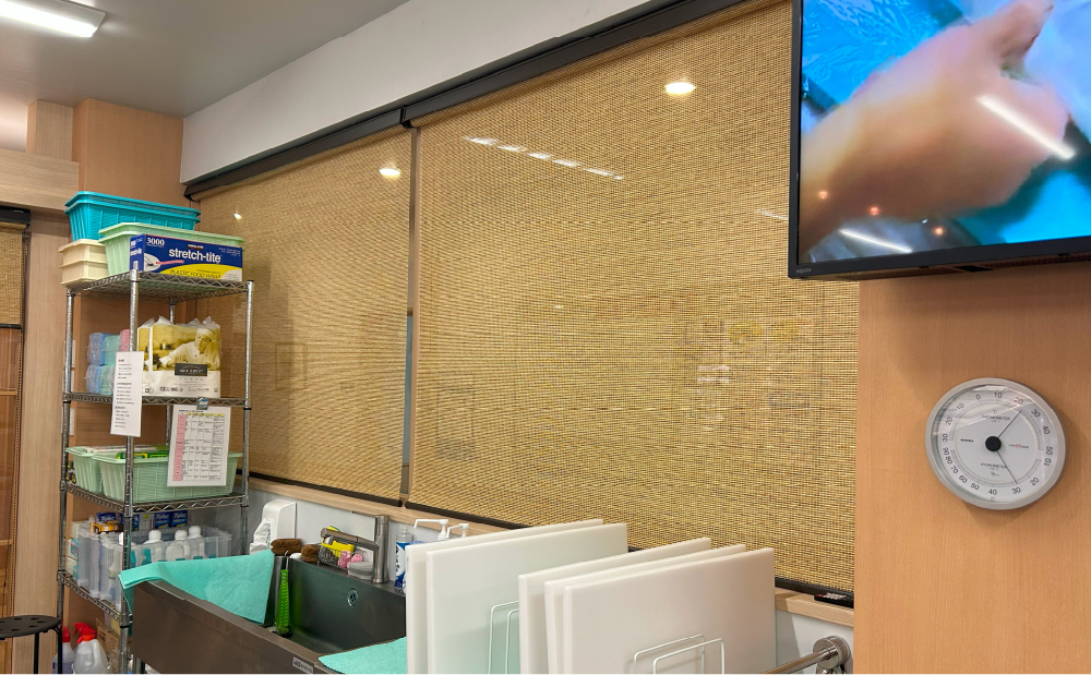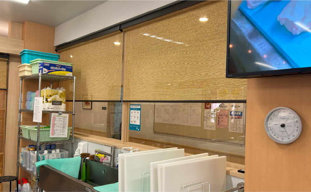 同じくドラマに登場するよこた鮨アカデミーに、ロールスクリーン「ラルクシールド」も使われています。