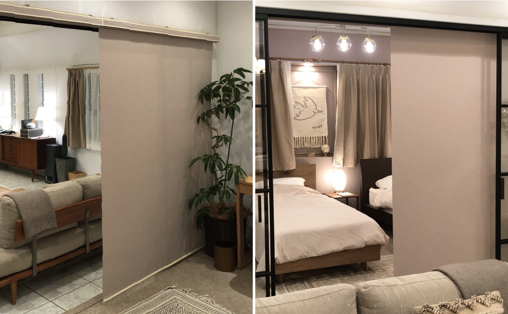 主人公の自宅に、ロールスクリーン「ラルクシールド」が使われています。ざっくりとした織りが特長の無地生地「エブリ」は、全40色のカラーバリエーション。お部屋の雰囲気やインテリアに合わせて、豊富なラインナップからお選びいただけます。
