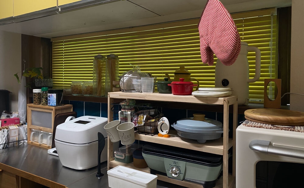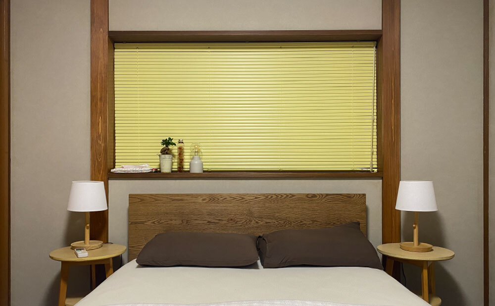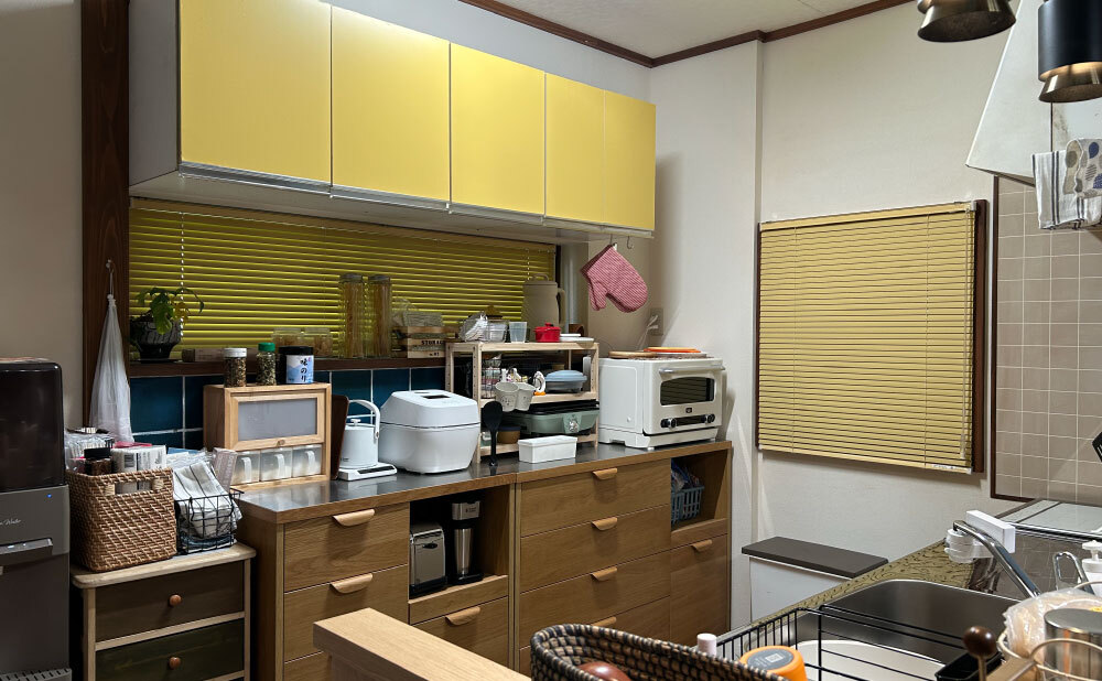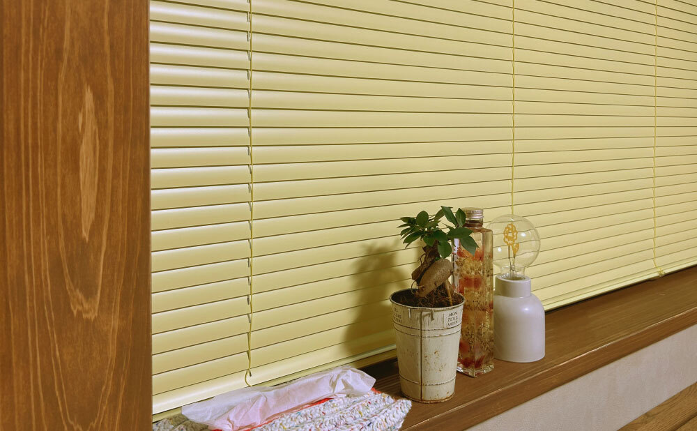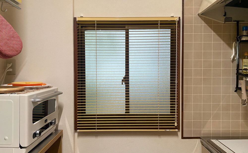 主人公の自宅の寝室にも「シルキーRDS」が使われています。「フッ素」コーティングされているスラットだから、汚れが付着しにくく、お手入れの気になる水まわりやキッチンの窓にもぴったり。