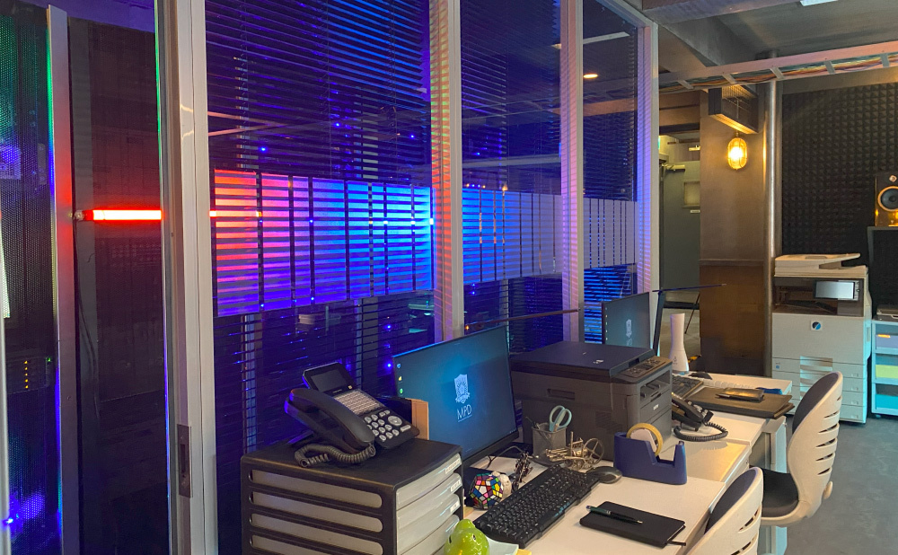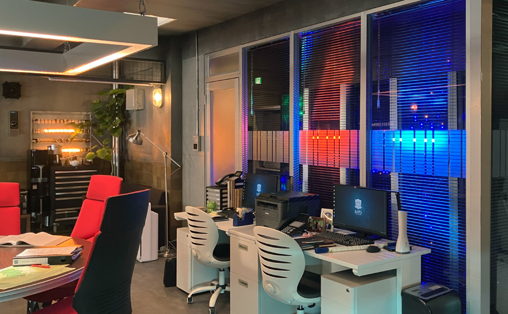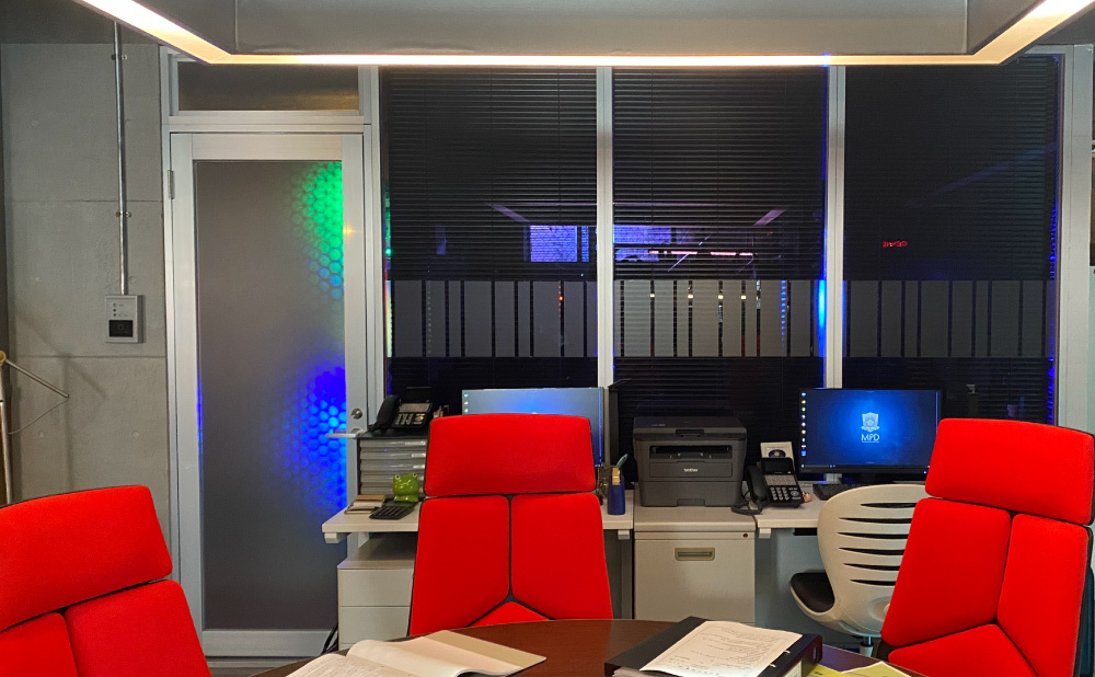 ドラマに登場する緊急事案対応取調班にヨコ型ブラインド「シルキーRDS」が使われています。「マットブラック」のスラットカラーが、グレーを基調とした壁紙やシルバーの建具に馴染んでいます。室内温度の上昇を抑える効果のある「遮熱」スラットは、快適に集中したいお部屋の窓にぴったり。