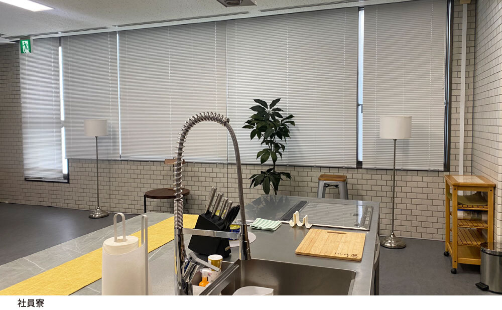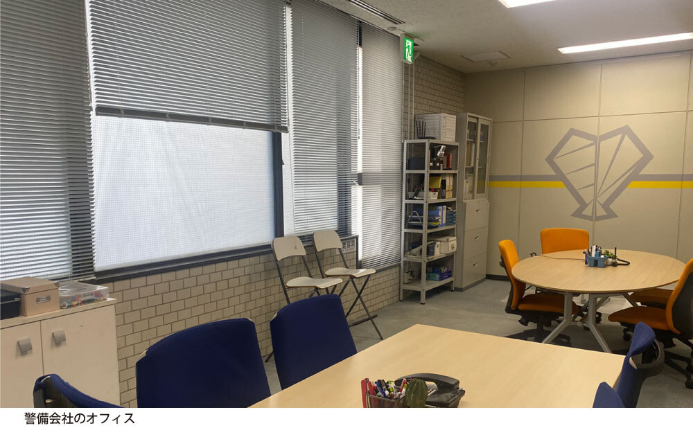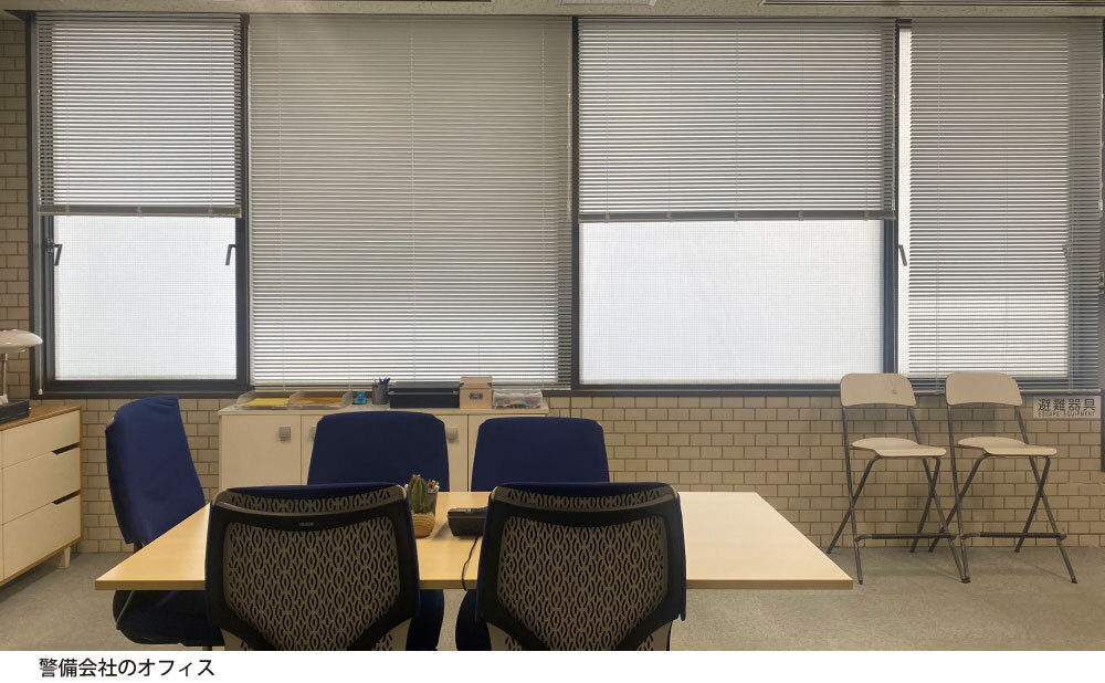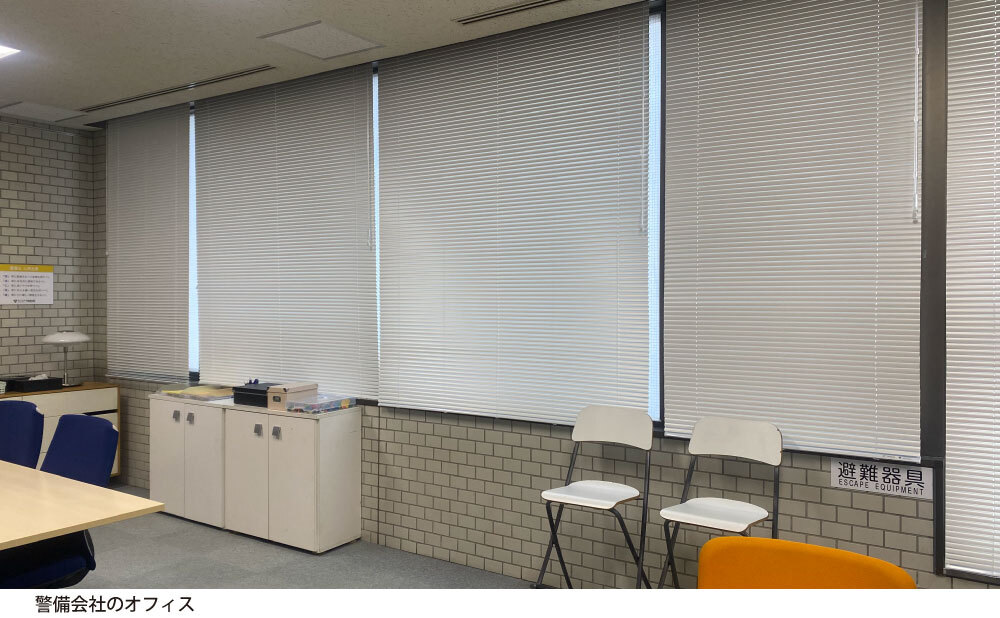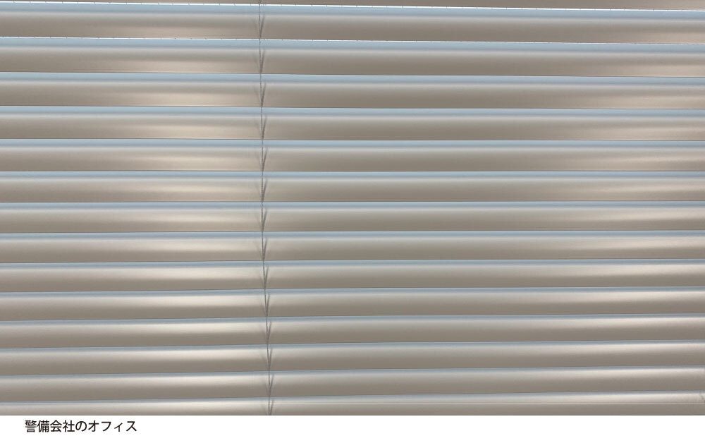 ドラマに登場する警備会社のオフィスや社員寮にヨコ型ブラインド「シルキーRSD」が使われています。ツヤのない「マットスノーホワイト」のスラットカラーが、明るい雰囲気に仕上げています。コードを少し引くと、ブラインドが自動的にゆっくり降りて安心の「RSD(減速降下機能)」は、不特定多数が出入りする空間に最適です。